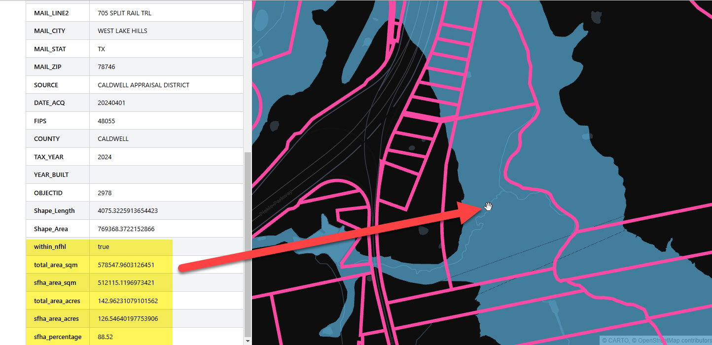 # Extract the total area and within_nfhl flag back into the original CRS parcels GeoDataFrame