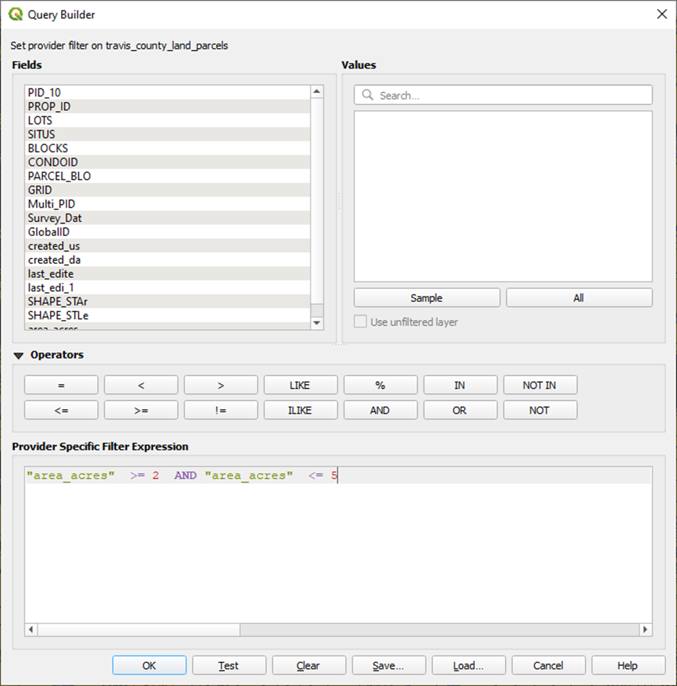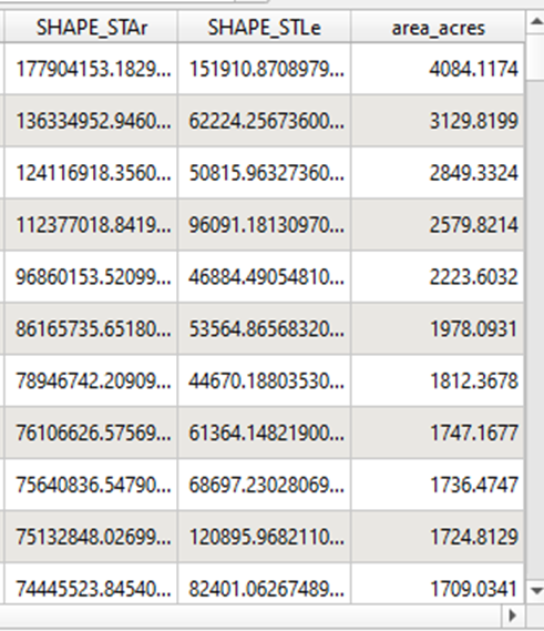 - Filter to only parcels within our acreage range