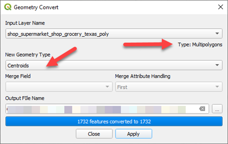 Convert way polygon layer to centroid points: