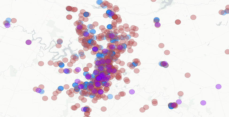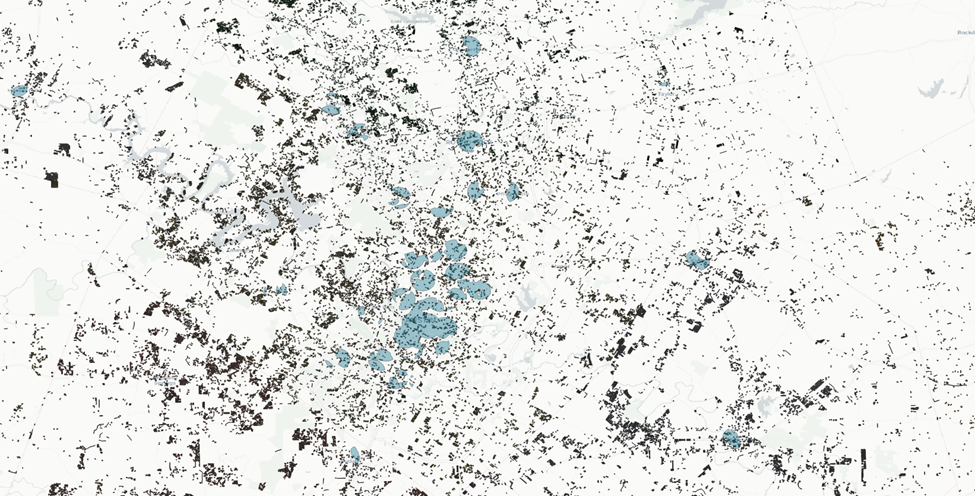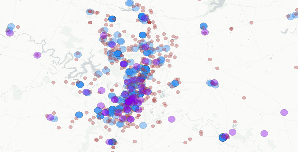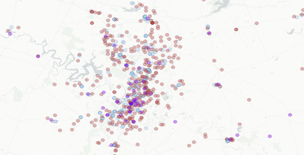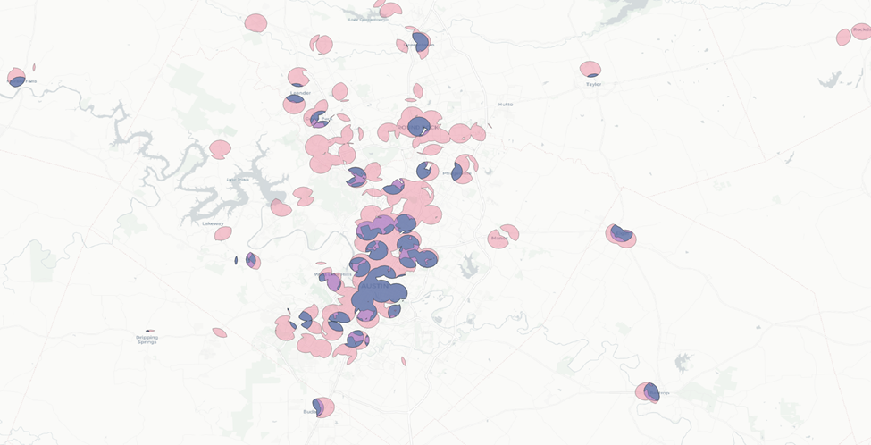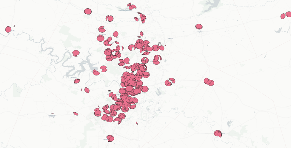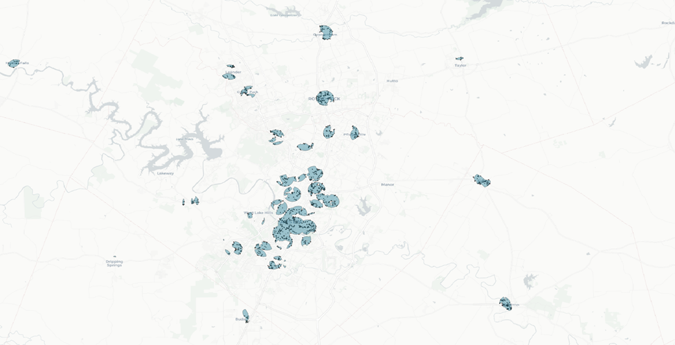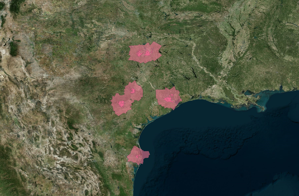 We have 49 counties across our five different metro areas. We’ll want to tackle this in smaller pieces. Let’s focus on the counties that fall within the City of Austin buffer zone.