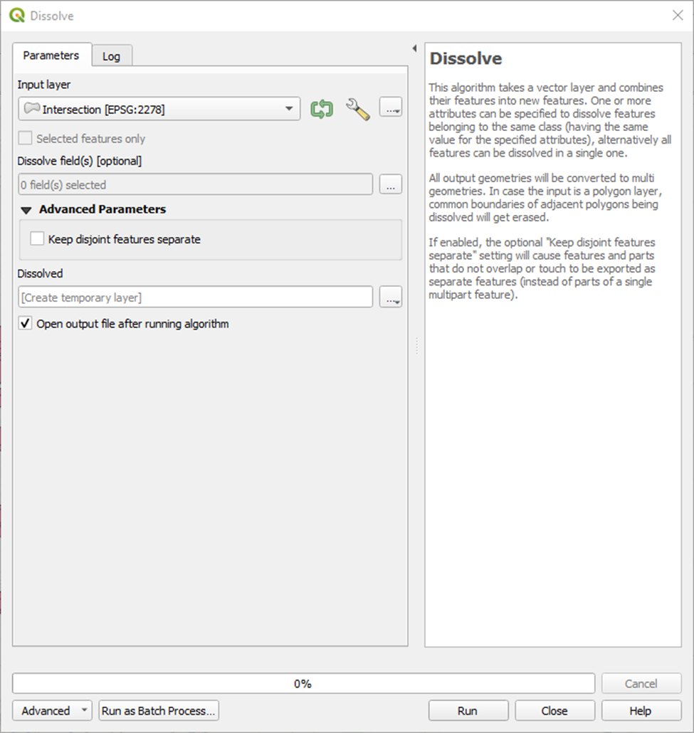 Next we’ll dissolve the results of this intersection to combine all of these separate features into one.