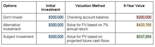 Armed with this information, we can more quickly answer the question “should we move on the subject investment (25% IRR) or our alternative investment (7% IRR).
