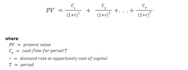 The sum of all of the discounted cash flows that an investment offers is our present value.